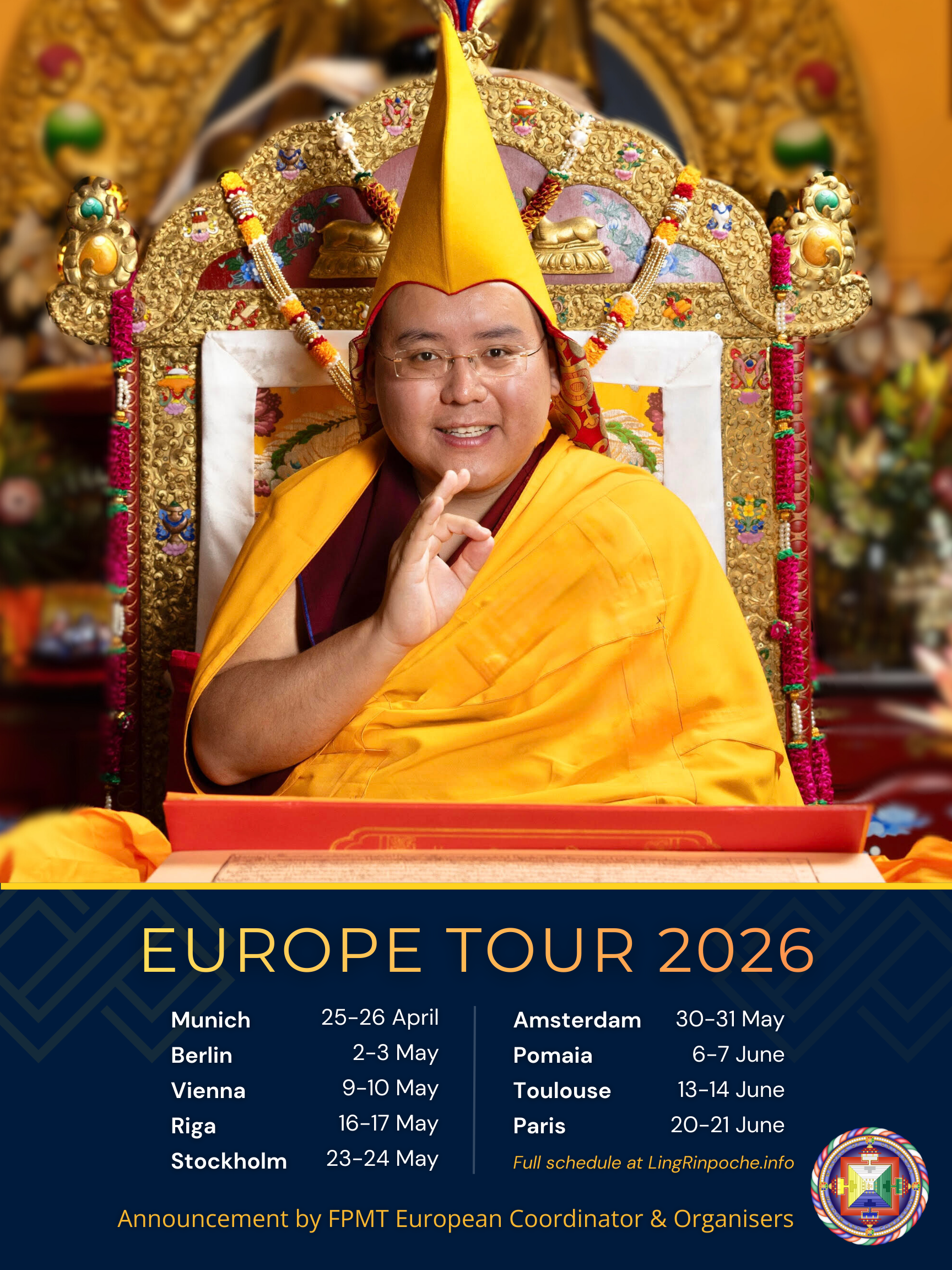 We are delighted to announce that His Eminence Ling Rinpoche has agreed to spend a few days in Nalanda during his 2026 European tour! His Eminence Ling Rinpoche is one of the great masters who will play an important role in the years to come.